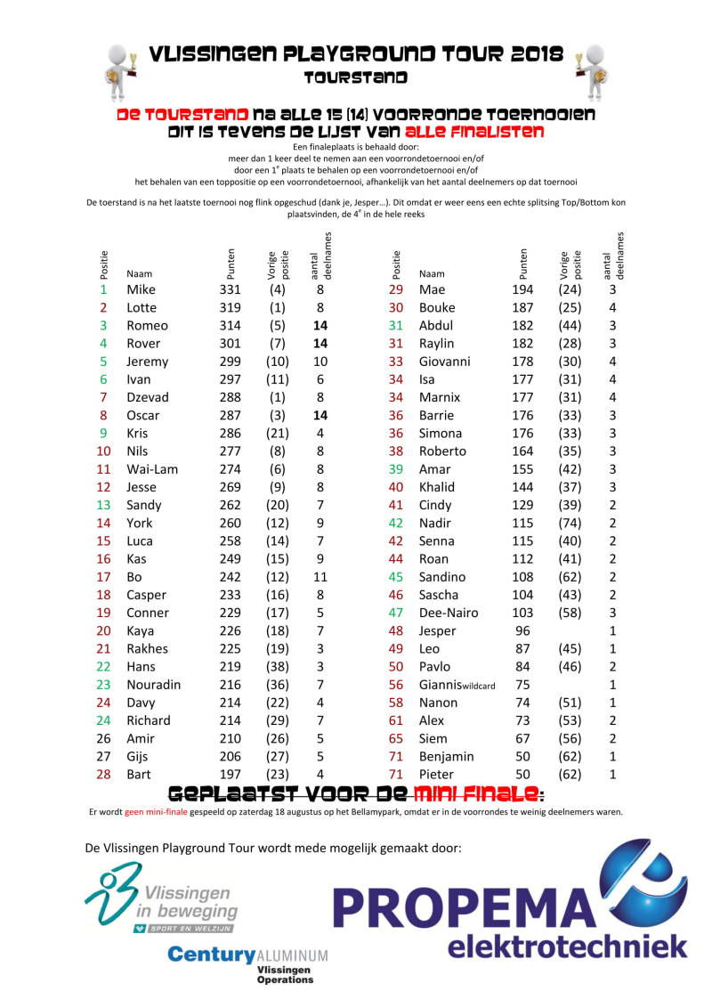 De Vlissingen Playground tour 2018 was een reeks van 16 random 3x3 Basketbal toernooien op 5 verschillende pleintjes in Vlissingen en een grote finale op het bellamypark in het centrum
